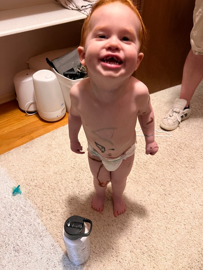 Our kids became more feral with every box we packed. Taking full advantage of the lack of supervision. They found creative new “canvases” for markers, lipstick (*not blood*), even dirt—mainly bodies and walls. They found creative new places to rest/fall asleep—vacuum sealable bags filled with blankets, the hallway floor, and mom and dad’s bed a couple hours before bedtime.